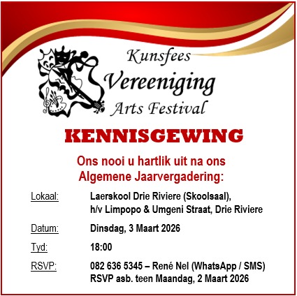 om al die talent wat hierdie jaar se kunsfees bied, saam met ons te kom geniet!